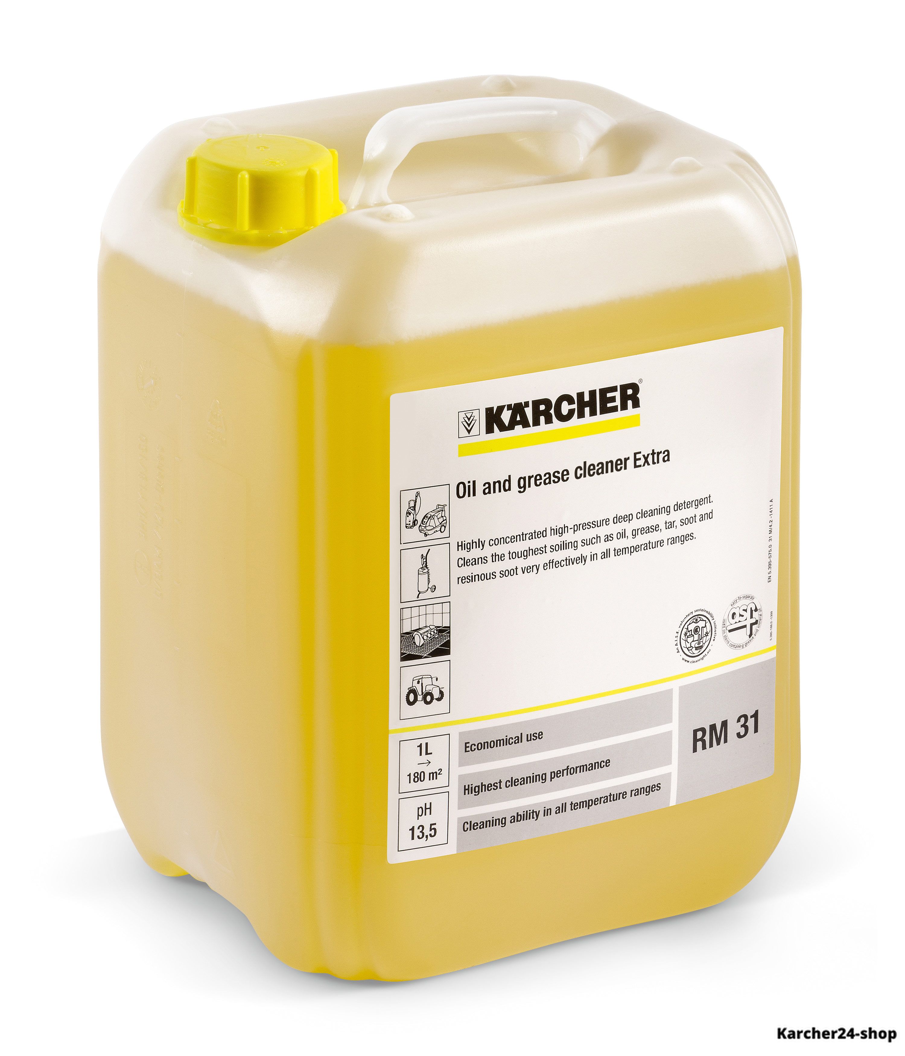 Высококонцентрированное щелочное средство Karcher для общей чистки высоким давлением. Исключительно эффективно во всех температурных диапазонах, удаляет стойкие масляные и жировые загрязнения, дёготь, сажу, дымовые смолистые отложения.